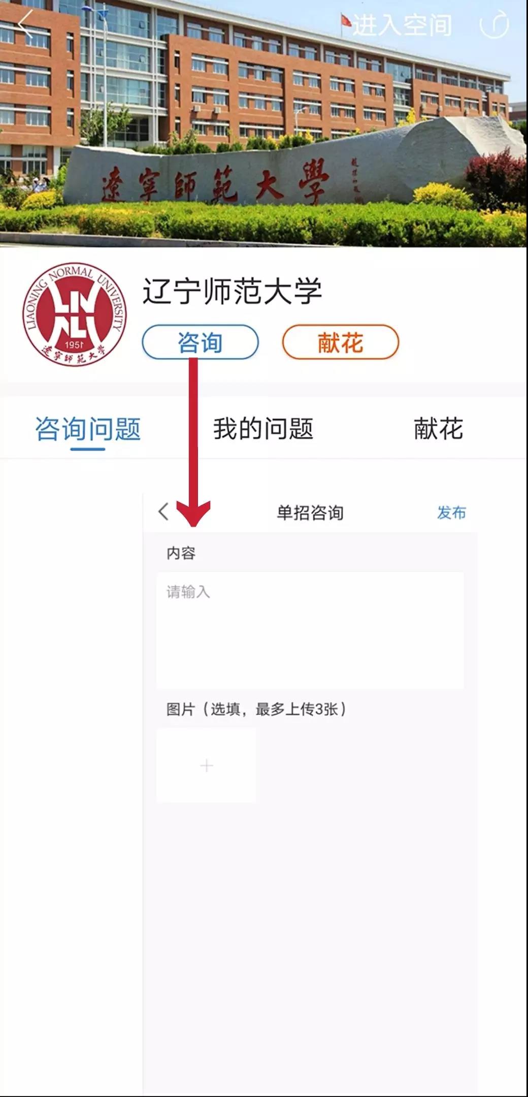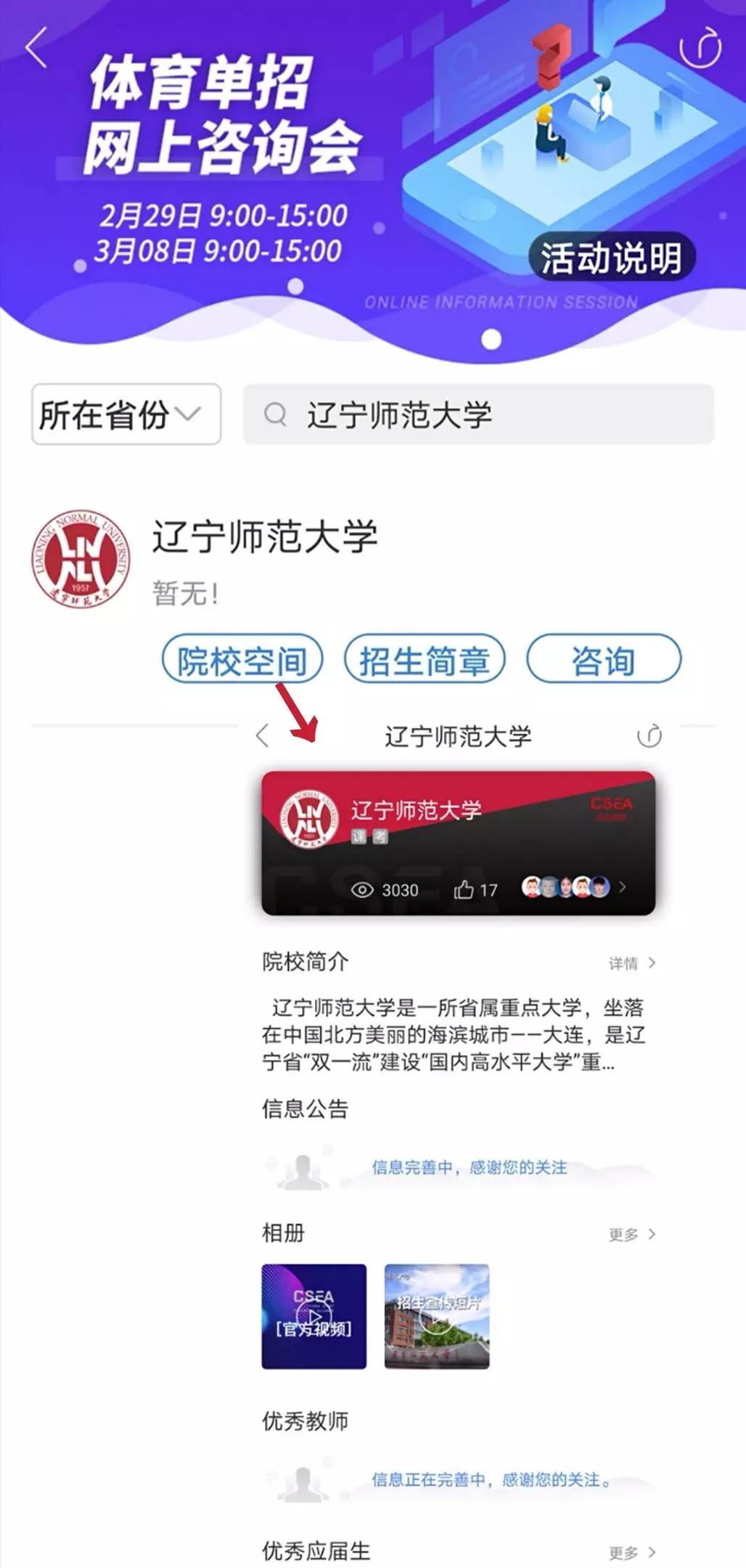 学生可通过CASE APP访问辽宁师范大学的空间,查看院校介绍和招生简章等相关信息,在院校空间留言咨询相关问题,本科招生与就业处会及时对问题进行答复。