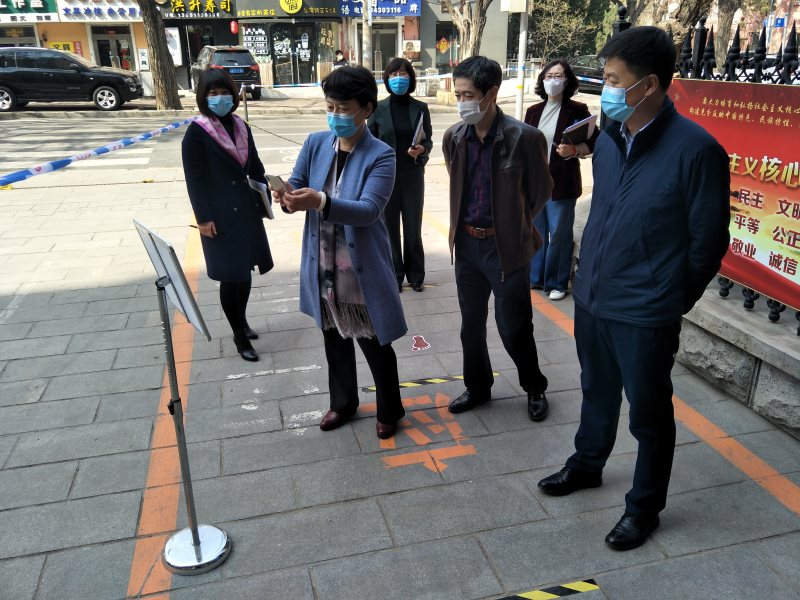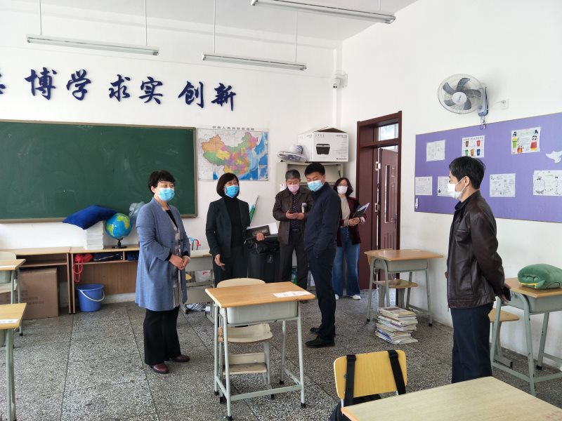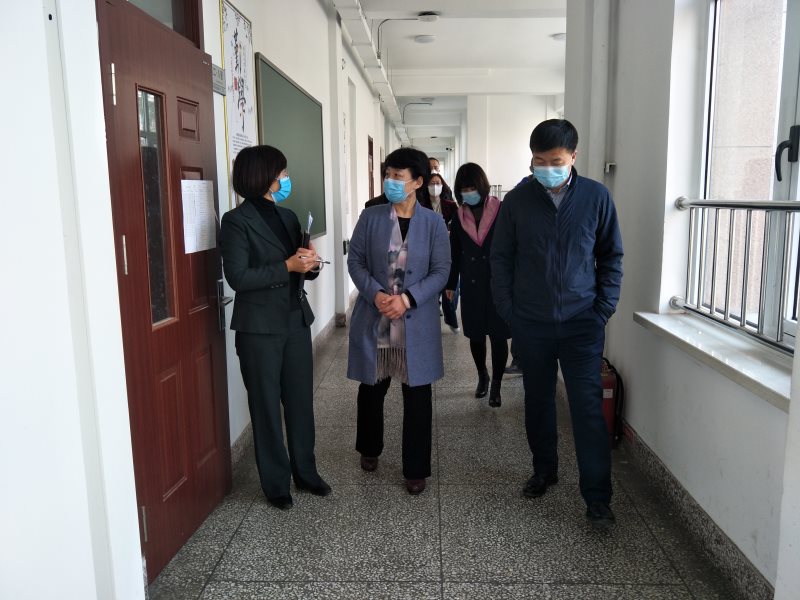 调研中,王冬凌院长和万鹏飞副院长一行现场模拟师生返校情境,对师生入校、体温检测、入校消毒、签到与体温登记、路线标识、教室桌椅的间距、隔离室等进行了身临其境、细致入微的体验式调研,王院长以问题为导向,边体验、边询问、边指导,认真、详细地了解了师生的“日报告”、“零报告”、校园封闭管理、学生用餐流程、开学后教学安排、疫情防控应急处置、防疫物资储备等情况。