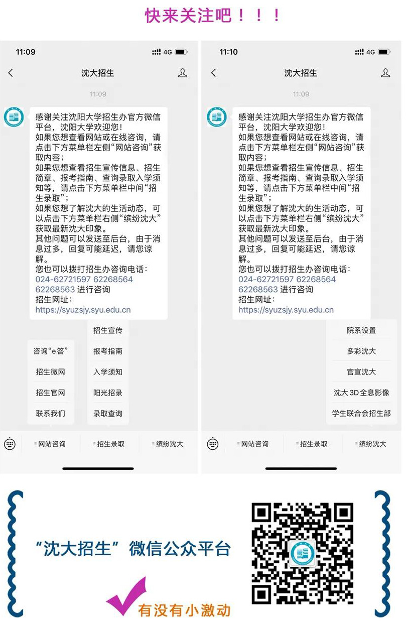 咨询方式2——关注“沈阳大学招生咨询”微信公众号