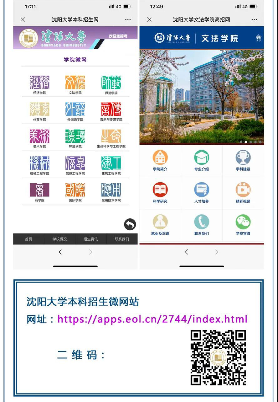 沈阳大学本科招生微网站,包含学校概况,招生章程,招生计划,历年分数等供考生及家长参考,更有专业介绍,精彩视频让你全面了解沈大。您可通过“沈大招生”微信平台左下角“网站咨询”模块进入“招生微网”,也可通过下面网址及二维码进入。