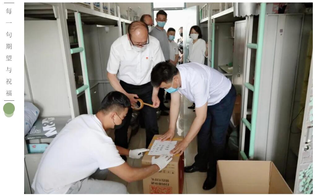 在行李打包过程中,全校各部门积极联动,互相配合,大家同心协力,连续奋战6个日夜,圆满完成了3100余名毕业生离校物品的整理、打包及邮寄工作。辅导员老师给学生打包行李过程中,亲笔在每件行李逐一写上祝福的话语:“努力工作别脱发!”,“面对疾风时,记得拿捏好自己的气质”,“最后牵挂你的除了父母,就是母校!你品!你细品!”见字如面,希望以手写毕业“寄”语这种特别的方式,将最深情的祝福连同行李一并送达给远在祖国各地的2020届毕业生——母校的孩子们!希望他们带着母校的祝福,在未来的人生道路上后浪扬帆、奔涌启航。