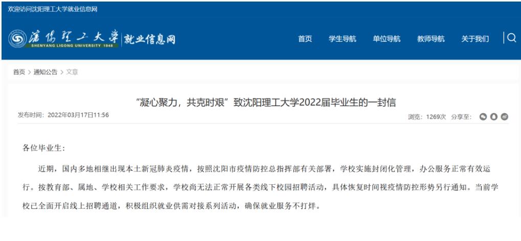 抗疫情,暖初心,促就业,伴成长。沈阳理工大学将为2022届毕业生求职就业保驾护航。