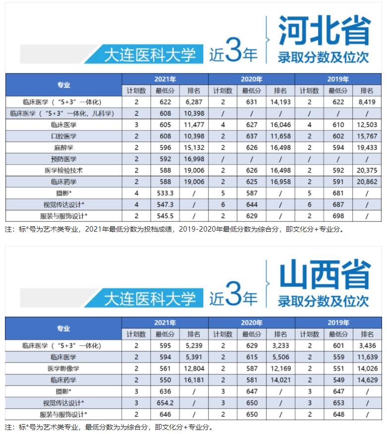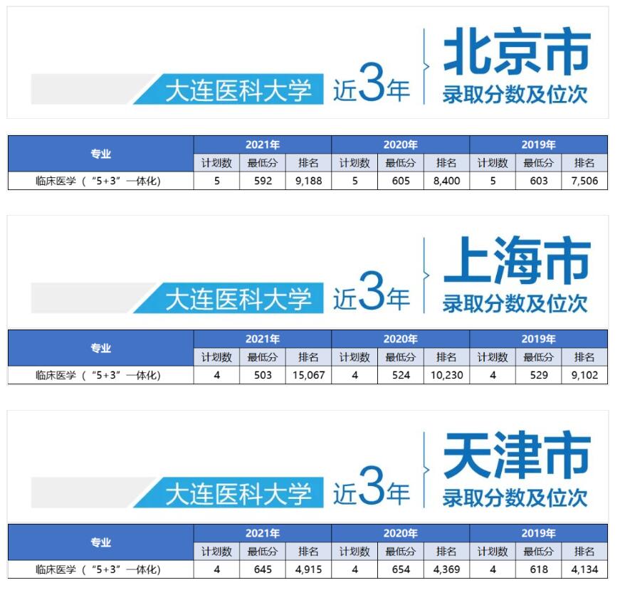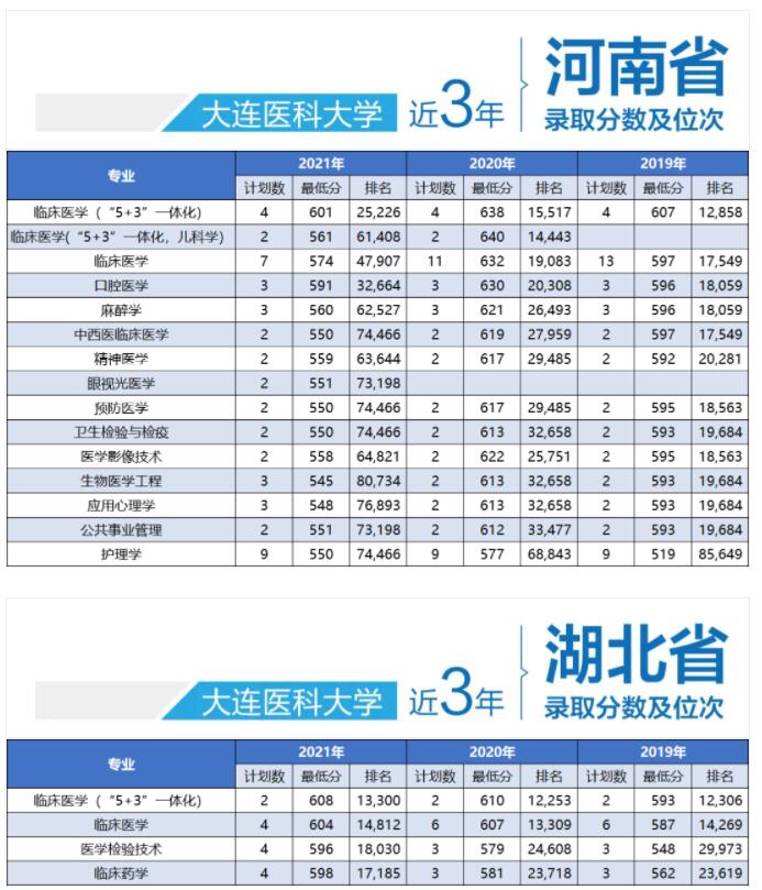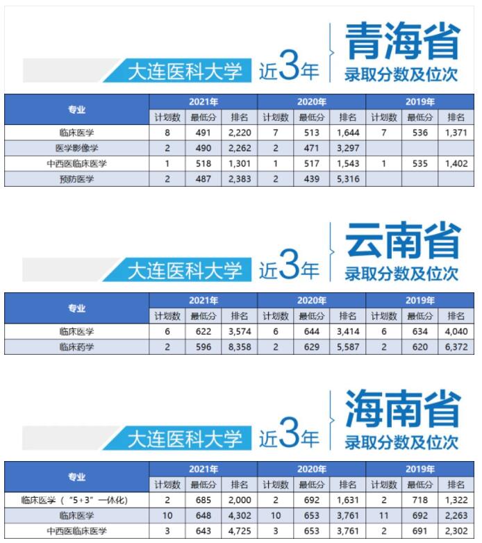 大连医科大学近三年录取分数!