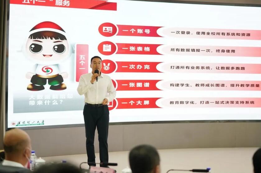 冯守权一行来到学校大数据中心开展座谈。宁先圣代表学校对省教育厅领导莅临指导工作表示热烈欢迎,并详细介绍了学校大数据中心的服务目标、中心职能、服务情况等内容。围绕学校国防特色和对俄合作两大优势,梳理了平台建设、人才培养、科研成果等方面的发展现状。结合学校“十四五”发展规划,对学校发展新动能、新突破、新跨越和新愿景等内容进行逐一解读。宁先圣还阐述了学校依托科技赋能开展全民国防教育具体情况,并对学校秋季开学疫情防控工作的专题部署、教育教学管理、政策依据、关注动态、工作方案等内容进行了汇报。