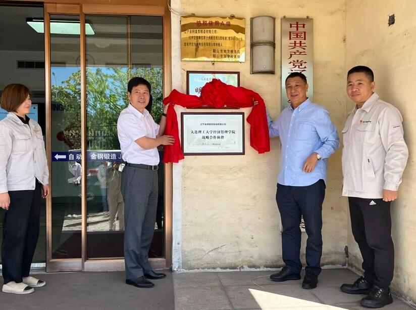 9月19日上午,调研团来到位于鞍山市的辽宁金钢重型锻造有限公司。董事长陈鉴校友带领调研团一行深入生产车间了解企业生产经营,并对公司自1993年6月成立以来的发展历程进行介绍。朱方伟与陈鉴共同为“大连理工大学经济管理学院战略合作伙伴”揭牌,双方还就成立校友投资基金的构思进行深入探讨。