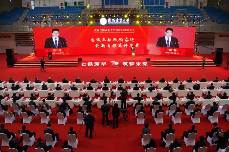 党委书记刘广林发表了题为《忠诚奉献砥砺奋进 创新自强再谱华章》的深情致辞,向光临大会的领导、嘉宾表示热烈欢迎,向关心支持学校事业发展的各级领导、各界朋友致以崇高敬意和衷心感谢,向广大校友、向各个时期为学校发展建设付出辛勤劳动的师生员工致以最亲切的问候并送上良好的祝愿。他说,七十年沧桑巨变,几代沈农人艰苦创业求发展,数次搬迁,几度合分,交替停办,但沈农人始终坚守立德树人初心,牢记强农兴农使命,前赴后继,开拓创新,为国家的188金宝搏beat官网登录 和农业现代化建设作出了不可磨灭的贡献。沈农的七十年,是在党的光辉照耀下茁壮成长、忠诚奉献的七十年。沈农先贤们充分彰显了忠诚于党、忠诚于教育事业,全心全意为社会主义事业服务的“忠诚品质”。沈农一直是听党指挥、紧跟党走的高校典范。沈农的七十年,是扎根东北黑土地辛勤耕耘、桃李芬芳的七十年。沈农培养出的十几万毕业生,培训的数万名农业技术人员,绝大部分工作在基层,他们在平凡而光荣的岗位上辛勤耕耘、默默坚守。沈农的七十年,是在国家农业现代化建设中建功立业、硕果累累的七十年。七十年来,学校共取得科研成果上万项。依托老一辈沈农先贤在土壤改良、植物病虫害防治、超级稻育种等方面的坚实基础,今天的沈农在水稻超高产育种、设施园艺、生物炭、人兽共患病等方面研究达到国内领先、国际先进,“创新”和“自强”打造了沈农教学科研一张张熠熠生辉的名片。学校坚持一张蓝图绘到底,圆满完成“十二五”既定目标,奋力书写了“十三五”全新篇章。全校在“十四五”建设“全国一流、东北特色、沈农品质”高水平大学的新征程中,推动学校实现了从跨越式发展迈入内涵发展、特色发展、高质量发展的新阶段。十年里,一系列战略性举措、变革性实践、突破性进展、标志性成果激励全体沈农人更加踔厉奋发、勇毅前行,学校育人环境日新月异,师资队伍不断壮大,教育教学水平不断攀升,学科建设捷报频传,科教兴农之花开遍辽沈大地,国际交流空前广泛,校园文化传承创新繁荣发展,全力谱写了建设高水平、有特色一流农业大学的新篇。今天是学校发展的新起点,我们将坚持以习近平新时代中国特色社会主义思想为指导,以立德树人为根本,以强农兴农为己任,为党分忧、为国奉献,再创新业、再立新功!以更加优异的成绩为党的二十大献礼!为建设“全国一流、东北特色、沈农品质”的高水平大学不懈奋斗!为实现辽宁全面振兴全方位振兴不懈奋斗!为实现中华民族伟大复兴不懈奋斗!