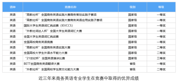 商务英语专业的学生在各项语言专项学科竞赛中持续取得了较好的成果,得到了行业和社会的认可。在商务英语专业,你将有机会参加各类具有影响力和竞争力的国际商务英语竞赛。通过参加这些竞赛,可以尽情展示自己的商务英语能力,与其他优秀的学生进行交流和比拼,锻炼自己的实力,并获得更多的机会和认可。
