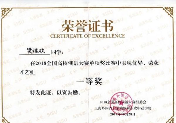 图:俄语专业学生荣获全国高校俄语大赛一等奖