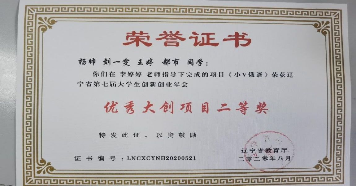 俄语专业注重学生全面发展,通过举办听说模仿大赛、俄文书法比赛、俄语演讲比赛等课外活动,引导学生领悟语言魅力,发掘自身潜力,借助实践项目让学生自行构思、设计、组织实施和制作项目成果物,提高学生俄语语言综合运用能力。进入高年级后,与俄罗斯留学生助教开展合作学习,围绕俄罗斯的历史、文学、科技、艺术、中俄文化差异等分别设置专题,为低年级学生开展讲座。培养信息查询、演讲表达、跨文化沟通等能力。除此之外,俄语专业教师为学生提供了许多展示自我的竞赛平台,我系学生多次荣获全国高校俄语大赛奖项,获批省级、国家级大学生创新创业项目,并在辽宁省创新创业年会等大赛中荣获省级奖项,许多学生根据自己的兴趣爱好参加了非学科类竞赛,成绩优异。
