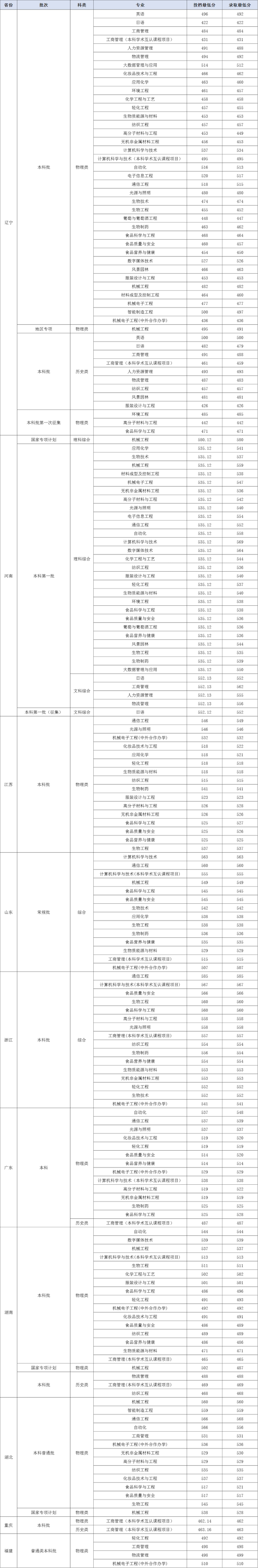 注:投档最低(综合)分含政策加分,录取最低(综合)分按原始分计算(不含政策加分)。