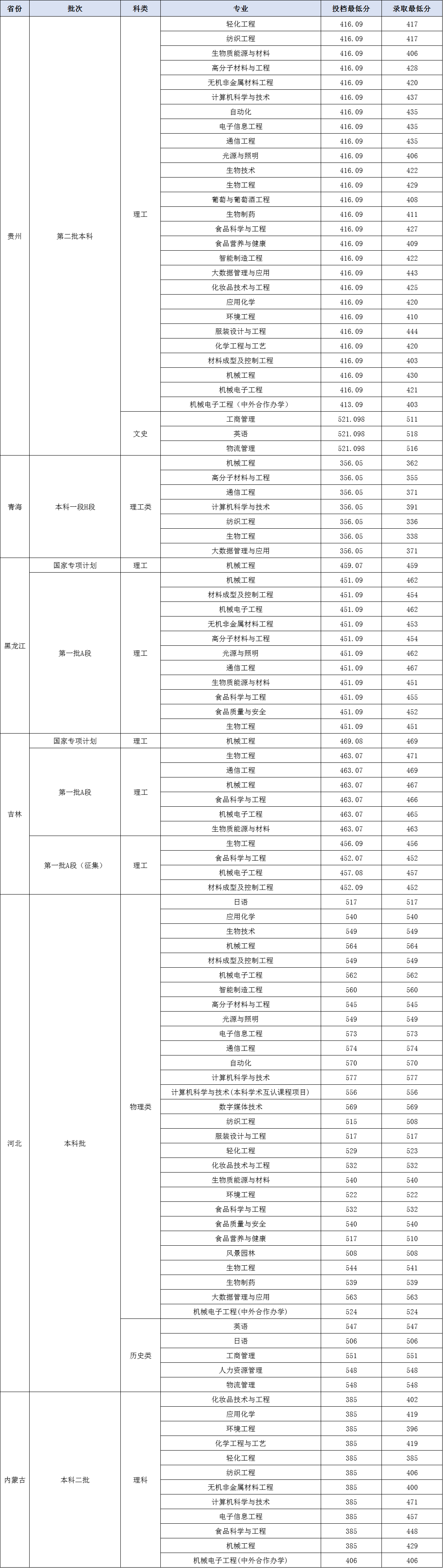 截止2023年7月27日,大连工业大学以下省份(批次)录取结束,分数如下:
