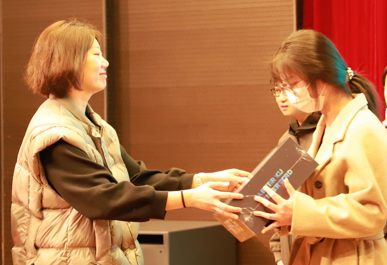 活动现场同学们热情高涨,积极互动,在轻松愉悦的气氛中收尾。活动还设置了抽奖环节,中奖的同学收到了主办方准备的精美礼品,老师为同学们颁奖并合影留念。