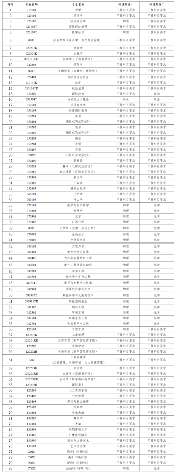 (三)高考综合改革试点省(市)设置的招生专业(类),对选考科目的要求、综合素质档案的使用办法,以当地教育行政部门(或招生考试部门)及辽宁大学本科招生官方网站公布为准。