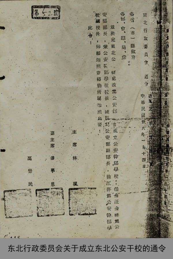 △1949 年1月,东北行政委员会决定组建东北公安干部学校
