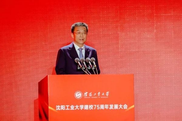 沈阳市委副书记、市长吕志成代表沈阳市委、市政府向学校全体师生员工和海内外校友表示热烈祝贺。他讲到,75年来,沈阳工业大学始终与祖国同行、与时代同步,书写了绚丽多彩的发展篇章。涌现了以唐任远院士、王立鼎院士、赵刚院士为代表的学界泰斗,培育了洪家光、盖立亚、葛丽玲等一批大国工匠,为国家输送了18万余名应用型、复合型人才,挺起了中国“工业脊梁”。创建了国家稀土永磁电机工程技术研究中心、国家级“2011”协同创新中心等多个国字号创新平台,创造了4项中国首创具有完全自主知识产权的科技成果,为国家科技进步作出了突出贡献。他指出,沈阳因装备制造、先进制造、高端制造而备受瞩目、闻名遐迩、享誉中外,这里面都有沈阳工业大学的贡献和付出。他希望学校在新的起点上,紧紧抓住沈阳建设国家中心城市,打造国家先进制造中心、综合性国家科学中心的战略契机,锚定建设国内一流大学目标,充分发挥学科优势、人才优势、科技优势,更好服务国家战略、融入地方发展,推动更多科研成果本地转化,为辽宁、沈阳全面振兴蓄势赋能。他诚挚邀请广大学子、校友多回母校看看、多到沈阳走走,积极回馈母校、更多支持沈阳。他表示,沈阳市委、市政府将一如既往地支持学校改革创新发展,在特色学科建设、科研平台运行、人才队伍培育等方面将为学校提供全方位支持,携手开创校地合作、共赢发展的新局面。