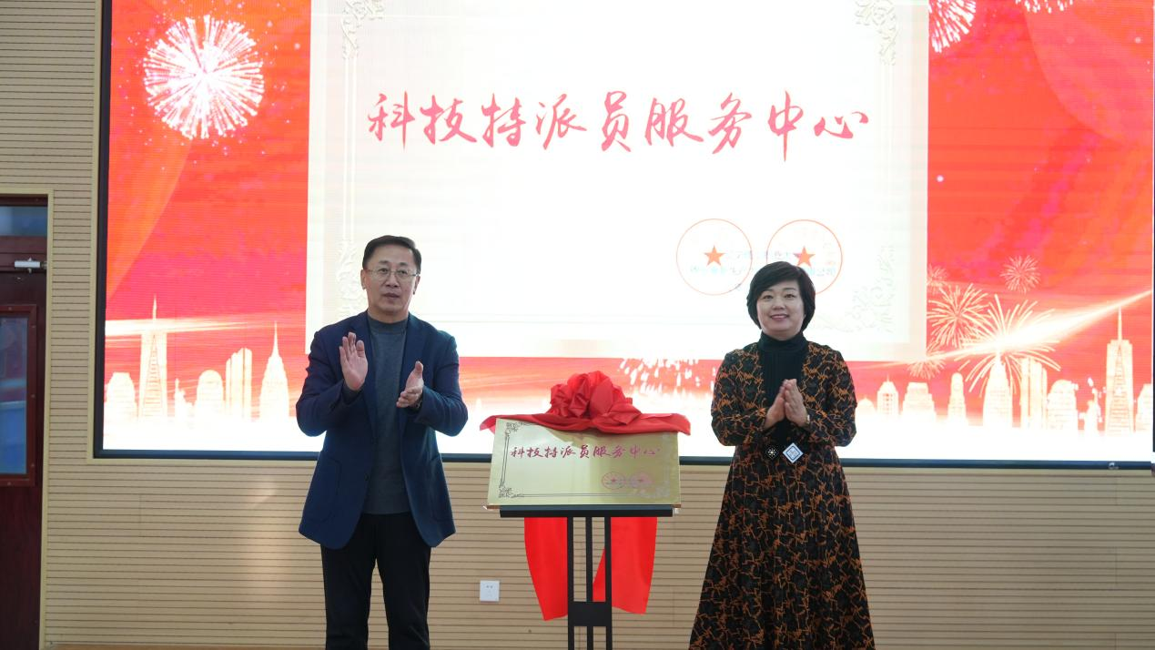 锦州市委组织部人才科科长张云峰与锦州市高新生产力促进中心有限公司董事陶义共同揭牌
