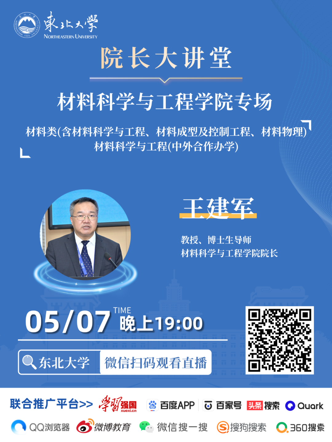 直播预告 | 东北大学院长大讲堂-材料科学与工程学院专场
