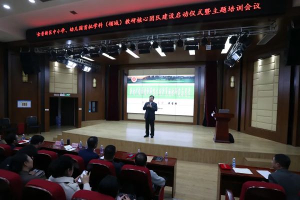 为深入推进课程教学改革,加强教研队伍建设,充分发挥教研工作在推进建设高质量教育体系中的作用,2024年4月10日,金普新区教育科学研究院举行了中小学、幼儿园学科(领域)首批教研核心团队建设启动仪式暨新时代教师教科研能力提升策略的研究与思考专题培训。教科院何长涛院长、于浩副院长、齐铁清会长、核心团队负责人、学科教研员和首批教研核心团队成员240余人参加活动。特邀长春师范大学黄宝国教授作专题讲座。