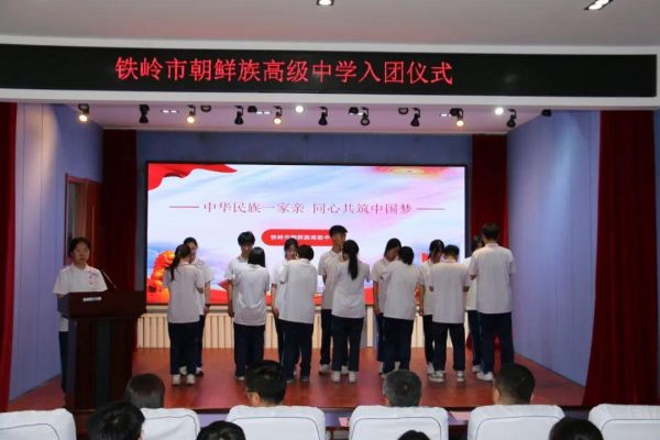 为深入学习贯彻党的二十大精神,继承和发扬五四精神,更好地发挥共青团员桥梁和纽带作用,引领和激励广大青少年大力弘扬以爱国主义为核心的伟大民族精神,5月15日,铁岭市朝鲜族高级中学隆重举行“中华民族一家亲,同心共筑中国梦”入团仪式。