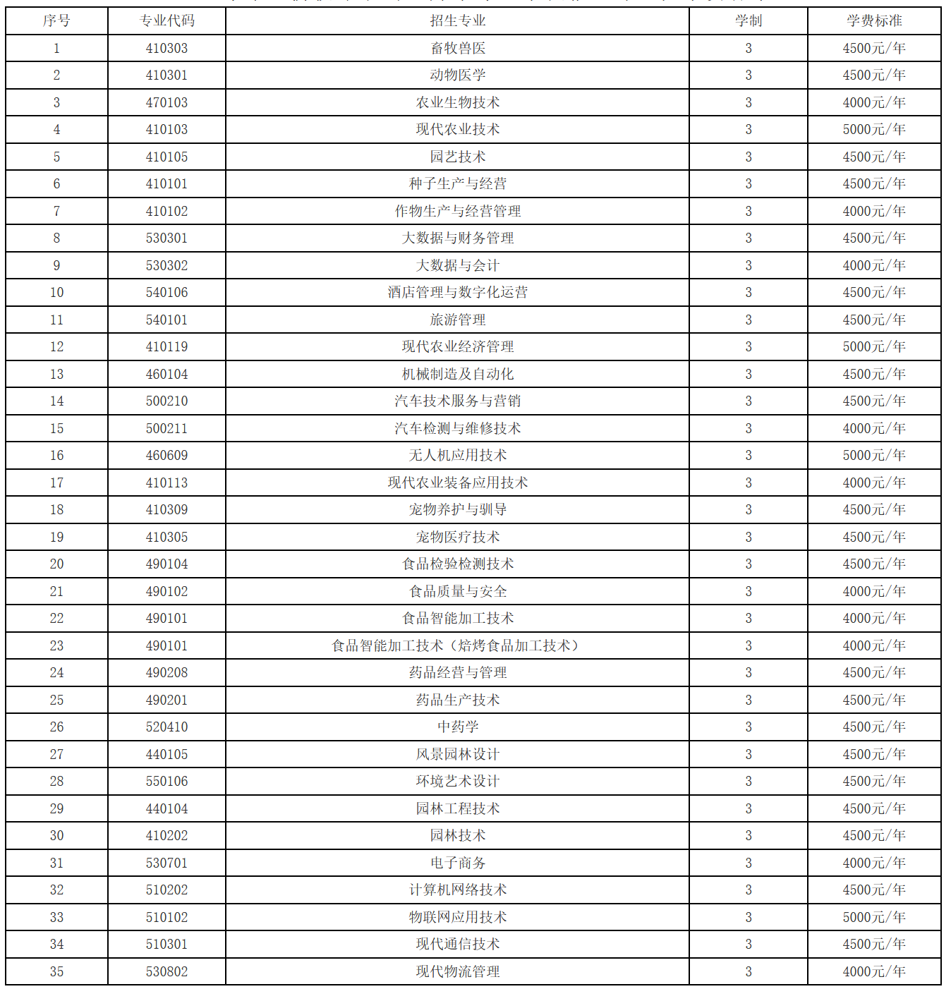 2021年第一阶段普通高考报名考生单独招生专业及学费标准