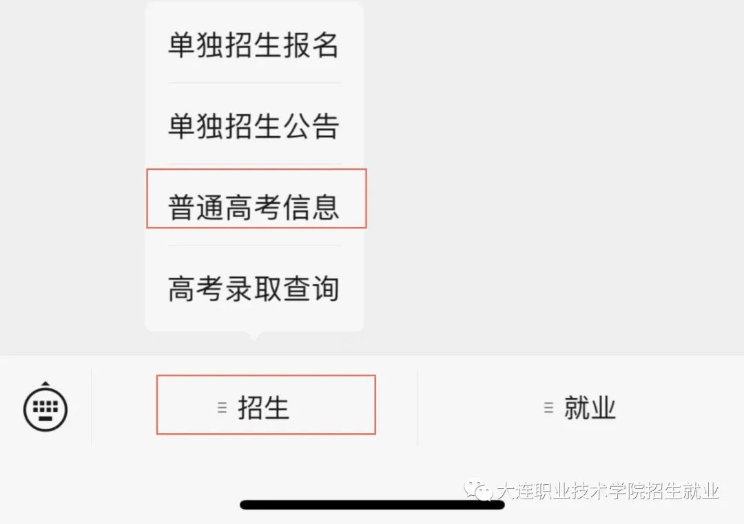 第一步:关注微信公众号“大连职业技术学院招生就业”。