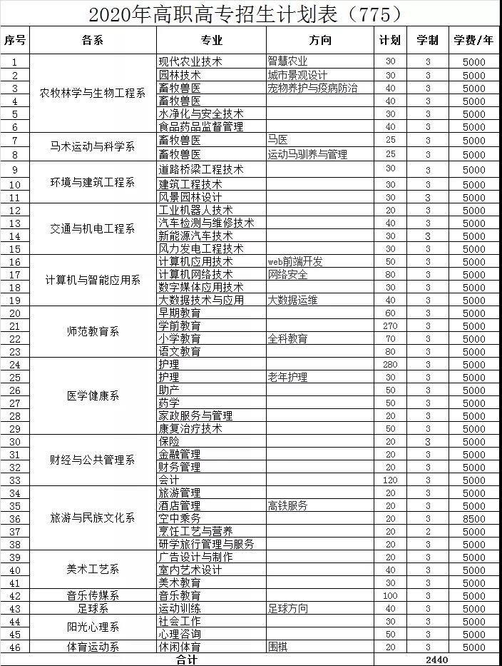 | 28 | 畜牧兽医 | 运动马驯养与管理 | 65 | 5000 | 马术运动与科学系 | 牧医类 | 5 |