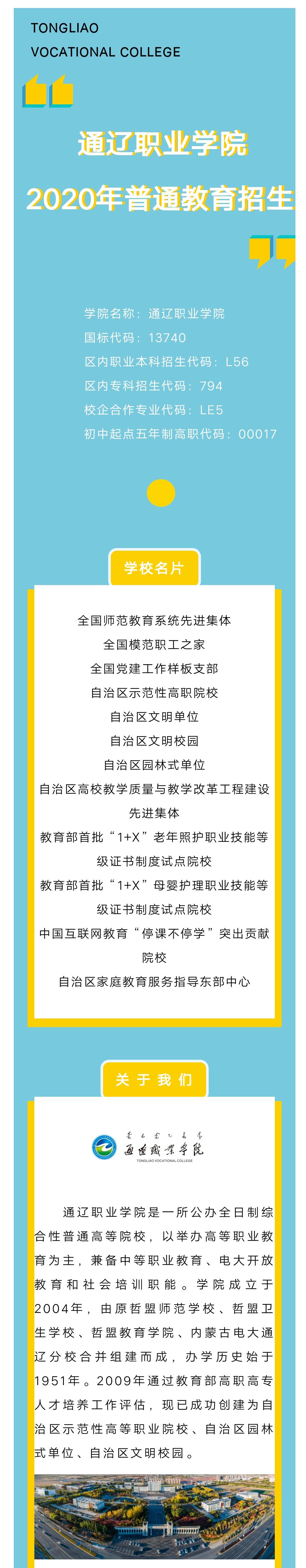 通辽职业学院2020年普通教育招生简章——高职专科填报志愿即将开始