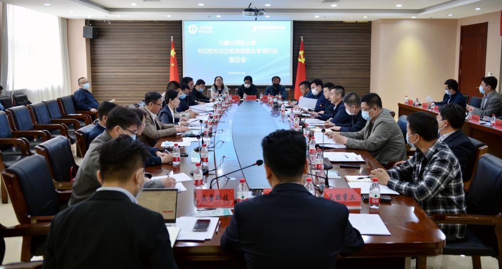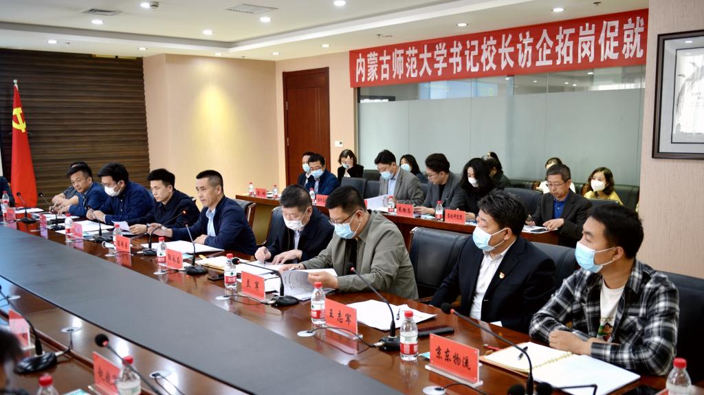 4月26日,内蒙古师范大学党委书记阿拉坦仓,党委委员、副校长张海峰一行赴呼和浩特总部经济大厦开展书记校长访企拓岗促就业专场行动。