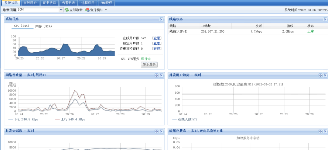 学校组织相关部门第一时间与电信运营商接洽协商,为居家办公、从事教学的教职员工的家庭带宽进行免费提速。同时,经过与教育网运营公司积极争取,将内蒙古工业大学的IPV4与IPV6教育网临时扩容1G带宽,有效提升了校内访问教育网资源的速度。考虑到开学初是教师申请国家级课题和学生完成毕业论文的关键时段,相关技术人员对VPN系统进行全面调整优化,实现了全校师生一人一账号管理,VPN专用带宽也由原来的1.5G提升到2.5G,使师生访问校内资源的网络速度得到显著提升。组织技术人员对校内各类网上教学平台和系统的应用进行摸排,对这些平台和系统进行网络带宽优化,进一步保障了疫情期间线上教育教学的顺利开展。