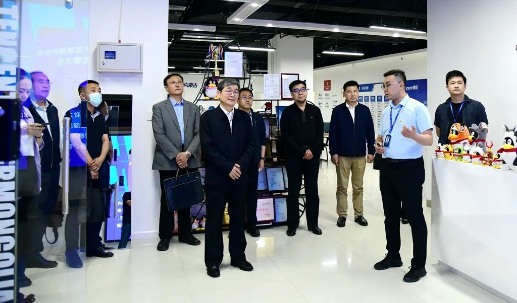 在内蒙古新媒体协会,阿拉坦仓一行实地参观了内蒙古新媒体协会成员单位腾讯内蒙古。