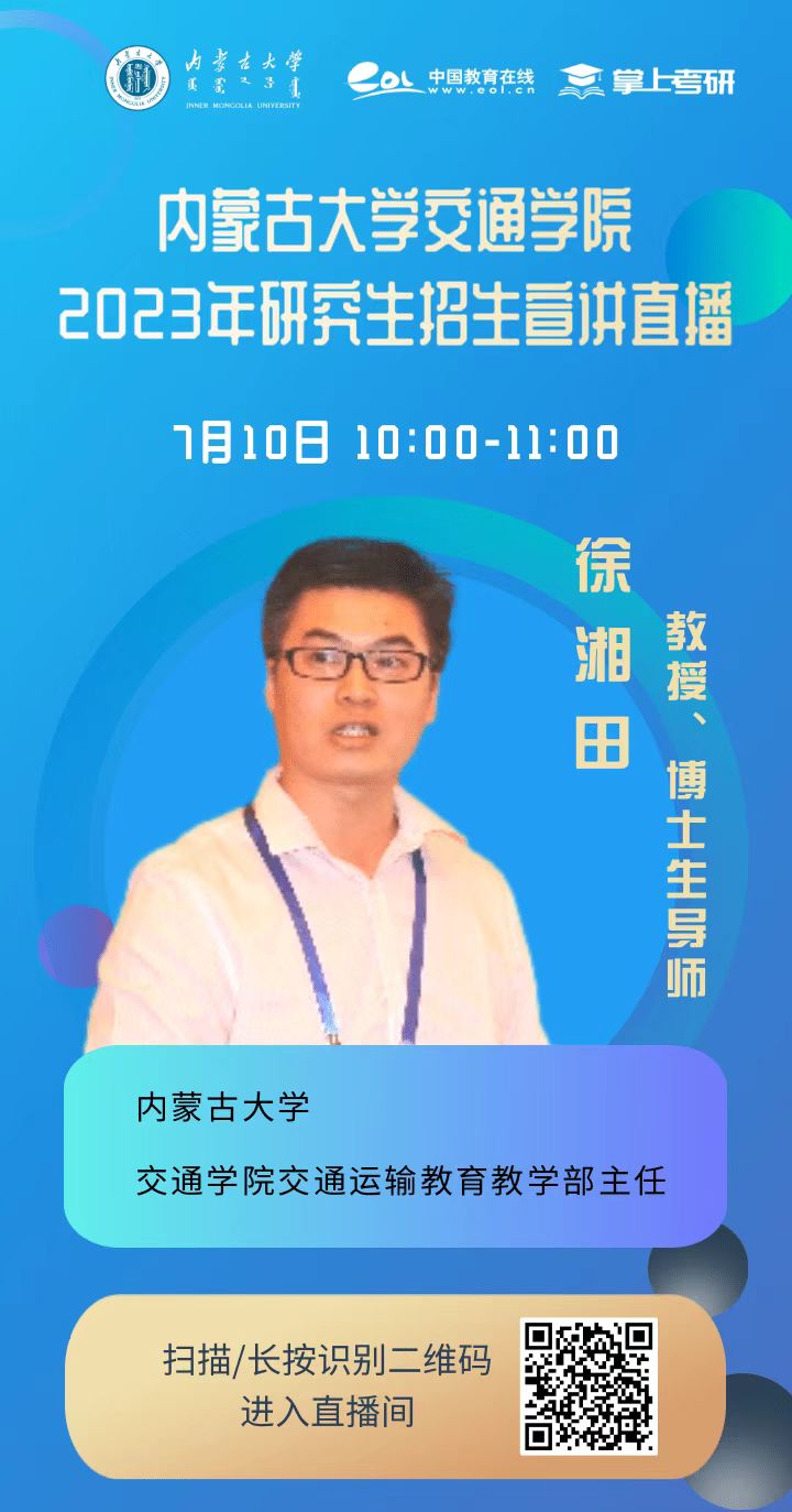 为满足考生对研招政策咨询需求,建立招生单位与考生之间高效的信息沟通渠道,金宝搏188入口 ·掌上考研联合内蒙古大学交通学院举办的2023年研究生招生宣讲直播即将开启!