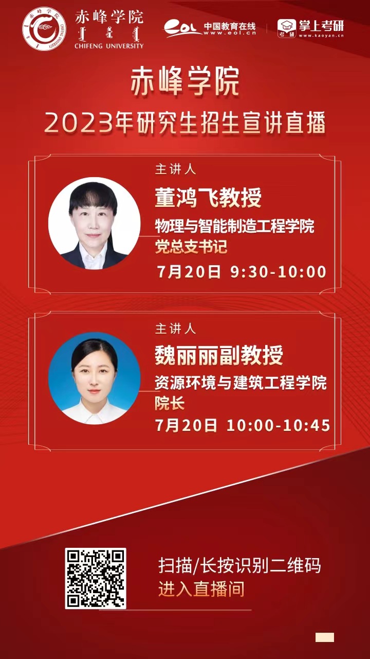 赤峰学院2023年研究生招生宣讲直播(第三场),7月20日准时开启!