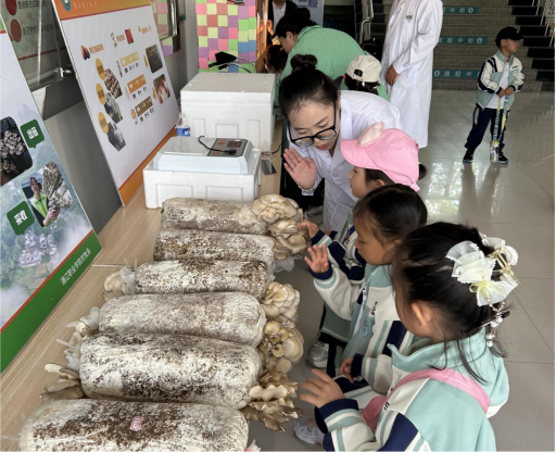 5月15日,农牧系开展“一技在手一生无忧”职教周开放日活动,迎来30余名幼儿园小朋友。活动设置三大趣味体验区:在“生命科学区”,孩子们亲手触摸平菇,了解菌类种植;“动物互动区”的活体兔、雏鸡引发阵阵欢笑,专业学生指导孩子们与小动物亲密接触;“现代农业区”最受欢迎,恒温孵化箱展示的鸡蛋胚胎发育过程令孩子们惊叹不已,此起彼伏的欢呼声充满展区。