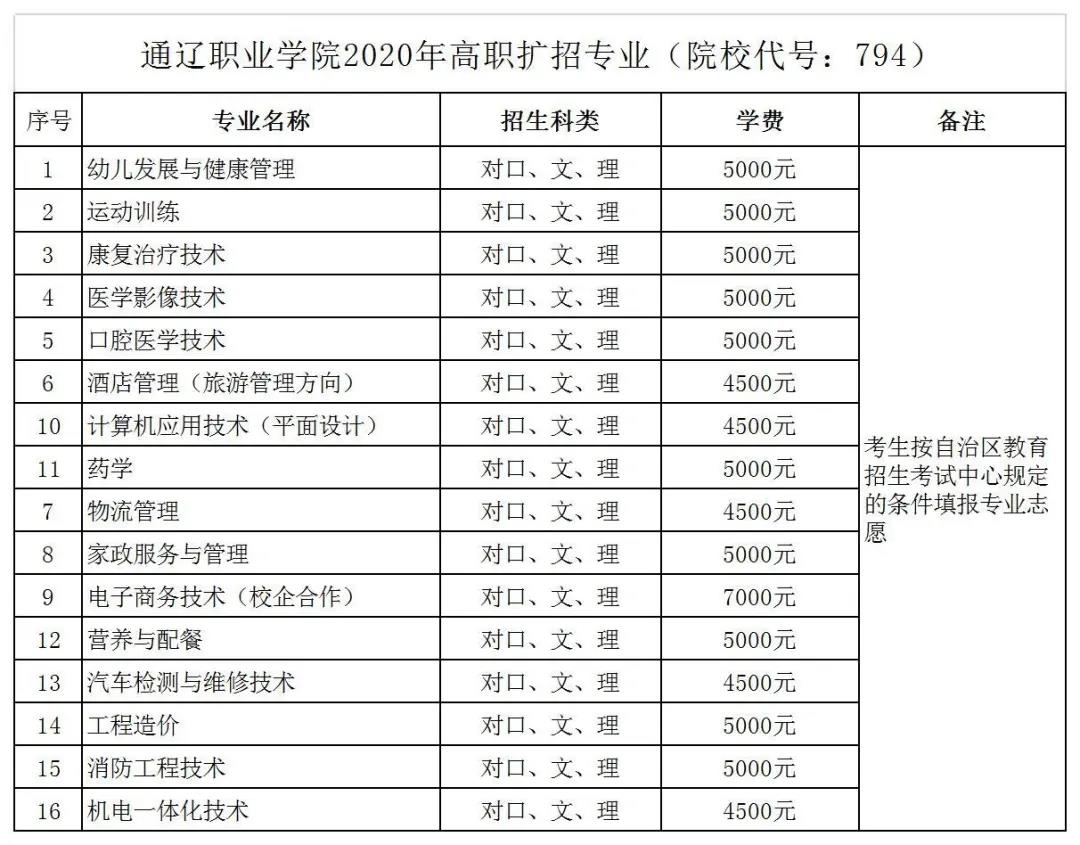 考生只可填报1所院校(通辽职业学院)志愿和3个专业志愿,同时要选择是否服从普通专业和高收费专业(学费标准高于1万元/年的专业)调剂。