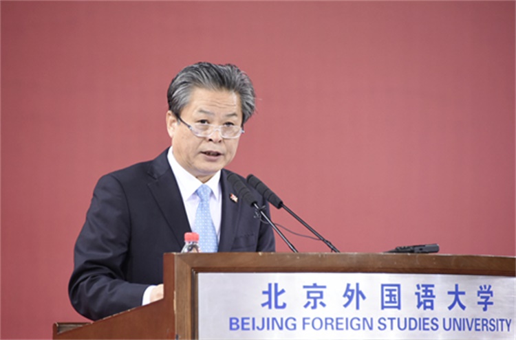 王定华在致辞中表示,北京外国语大学自建校以来就以服务国家发展为己任,始终与国家发展大局同向同行。党的十八大以来,在以习近平同志为核心的党中央的坚强领导下,北外不忘初心、牢记使命,锐意改革、砥砺前行,在原亚非学院的基础上,扩建成立亚洲学院、非洲学院,顺应了中国同亚洲、非洲各国互利共赢、共同发展的新期待新要求,体现了北外打造一流外国语言文学学科发展体系的决心和担当。