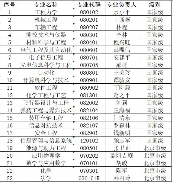附北理工入选首批一流本科专业“双万计划”建设点专业名单: