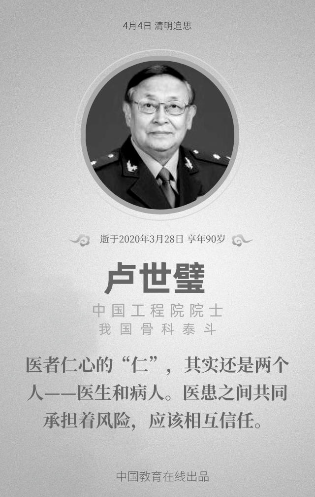 在全国抗击肺炎疫情的几个月中,亦有几位院士也因病不幸离我们远去。在此,也让我们一起致敬、缅怀。