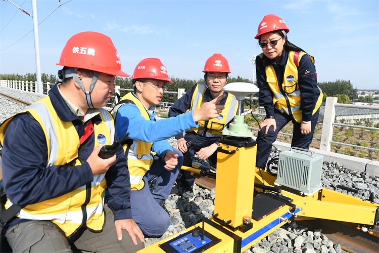 惯导小车在京沈高铁应用示范现场(左2为陈起金)