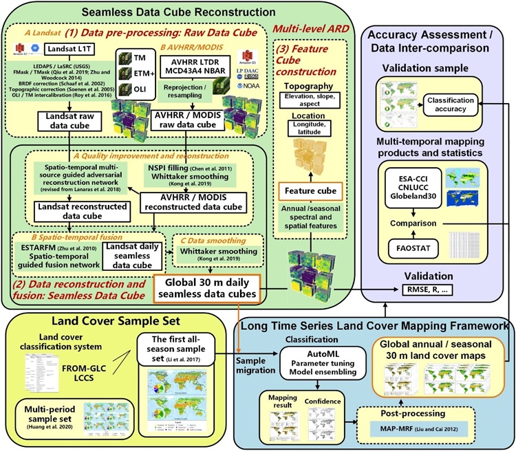 无缝数据立方体开发和全球土地覆盖制图技术框架