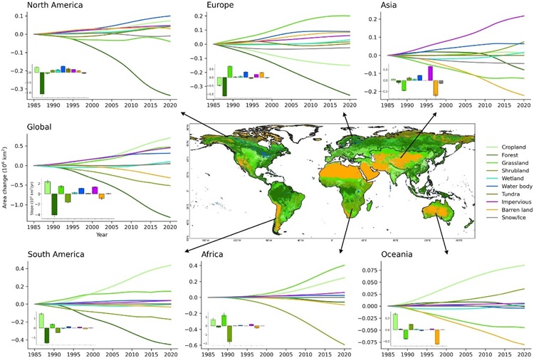 1985-2020年全球和地区地表覆盖变化趋势