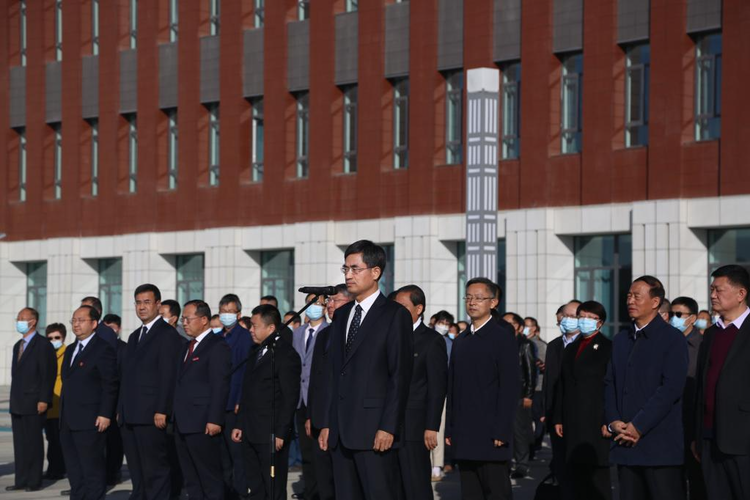 10月17日上午,新疆大学博达校区处处洋溢着欢乐喜庆的节日氛围,五星红旗在博峰前的蓝天白云映衬下,显得格外鲜艳。师生们身着正装,怀着激动的心情欢庆新校区正式启用。