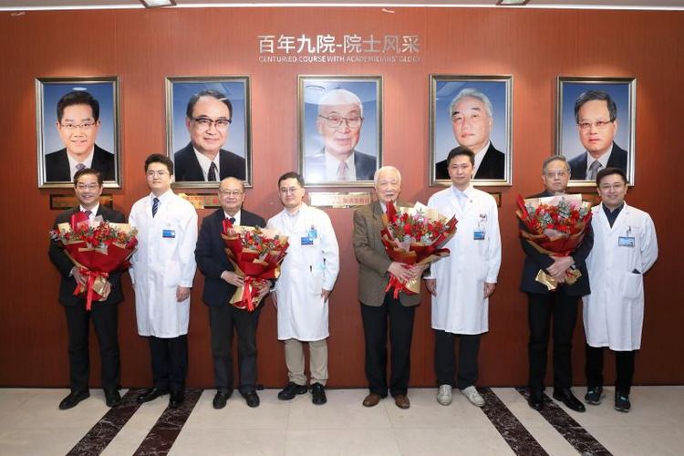 九院党政班子成员为院士墙揭幕,青年医师代表向在场的院士敬献鲜花,并合影留念。眼科柴佩韦作为学生代表发言,他分享了范院士对后辈们在科研上锱铢必较、敢为人先的教导,讲述了眼科团队在范先群院士的带领下长期致力于眼科疾病的临床诊疗和研究,尤其聚焦眼肿瘤和眼眶病诊疗技术创新和发病机制的研究,全力守护患者“光明”与“生命”的大医精诚。他表示,未来将继续以院士精神为引领,为攻克眼眶病和眼肿瘤疾病而矢志奋斗!