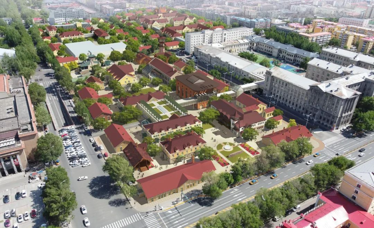 中俄联合校园规划在综合考虑开放街区、寒地气候环境和中西方大学在空间形态上共同特征基础上,提出以“街区·书院·暖廊”为规划布局的原则,即通过街区、暖廊形式连接各个书院,使整个项目既有小而独立的书院教学,又有大而整体的学院氛围。新建建筑采用具有俄式风情历史建筑特色符号,同时新老建筑的屋顶、墙面等色彩相互协调,“修新如旧”,最大程度传承花园街历史文化街区的传统风貌。