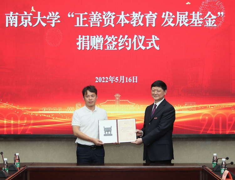 5月16日,南京大学"正善资本教育发展基金"捐赠签约仪式在仙林校区举行。南京大学党委书记胡金波,南京正善资产管理有限公司创始合伙人、社会学院2003级校友柯杰出席仪式。仪式由南京大学社会学院院长成伯清主持。
