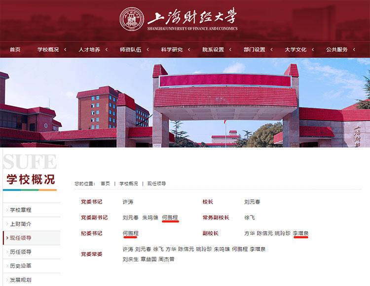 高校人事:李增泉任上海财经大学副校长,何鹏程任党委副书记、纪委书记