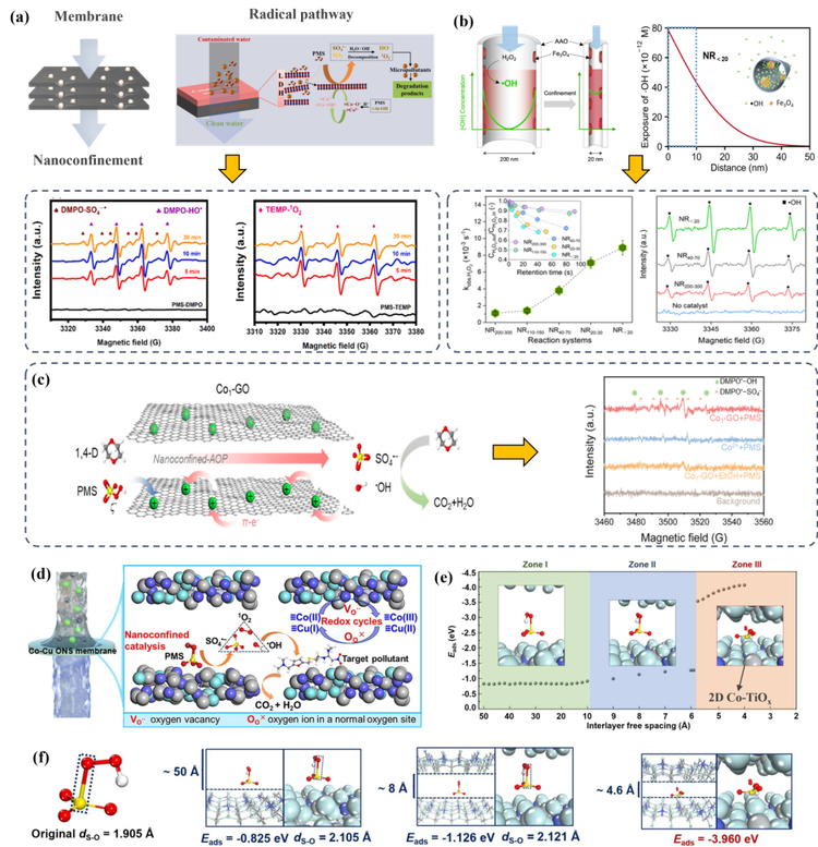 图3 不同纳米限域催化膜的降解机制和ROS形成示意图