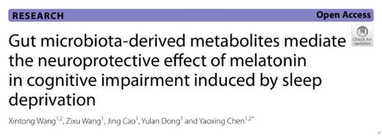 中国农业大学动物医学院陈耀星教授团队近日在《微生物组》(Microbiome)发表了题为“肠道菌群及其代谢物介导褪黑激素对睡眠剥夺诱导认知障碍的神经保护作用”(Gut microbiota-derived metabolites mediate the neuroprotective effect of melatonin in cognitive impairment induced by sleep deprivation)的研究论文,该论文首次从“微生物-肠-脑轴”角度探究了褪黑激素的神经保护作用,为防治睡眠不足导致认知障碍提供了新的治疗思路。