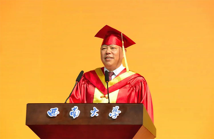同学们,今天既是“毕业礼”,也是“祝福礼”,更是“启程礼”。大家即将踏上新的征程,用青春书写新的乐章。希望大家坚守西南大学人的风骨、才情和气派,将奋斗当作人生的主旋律,既怀抱梦想又脚踏实地,既敢想敢为又善作善成。我坚信,你们一定能在强国逐梦的大好时代里,绘就出壮美的人生画卷!