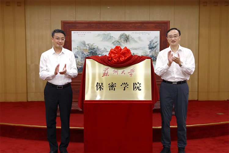7月22日,苏州大学、苏州市委机要保密局共建苏州大学保密学院签约仪式在天赐庄校区红楼会议中心举行。苏州市委常委、统战部部长王飏,苏州市委机要保密局局长李家全,苏州大学党委副书记邓敏,党委办公室、保密委员会办公室主任刘春雷,计算机科学与技术学院党委书记胡新华等出席活动。