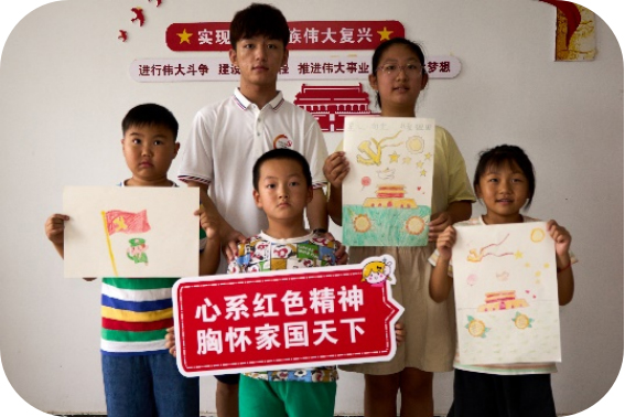 “老师,这个字怎么读?”“老师,这道数学题怎么解?”在这间临时搭建的“教室里”,孩子们争先抢后地向这群“新老师”提问。针对徐庙、赵亮社区存在许多留守儿童,父母不在身边,爷爷奶奶又辅导不了、暑期作业很难完成等情况。团队成员组织了课后“小饭桌”行动,为社区中小学生提供一对多的辅导,帮助他们完成暑期作业。并在授课之余,培养孩子课外兴趣,领略艺术之美,发掘孩子艺术天分,提供学习艺术的机会。